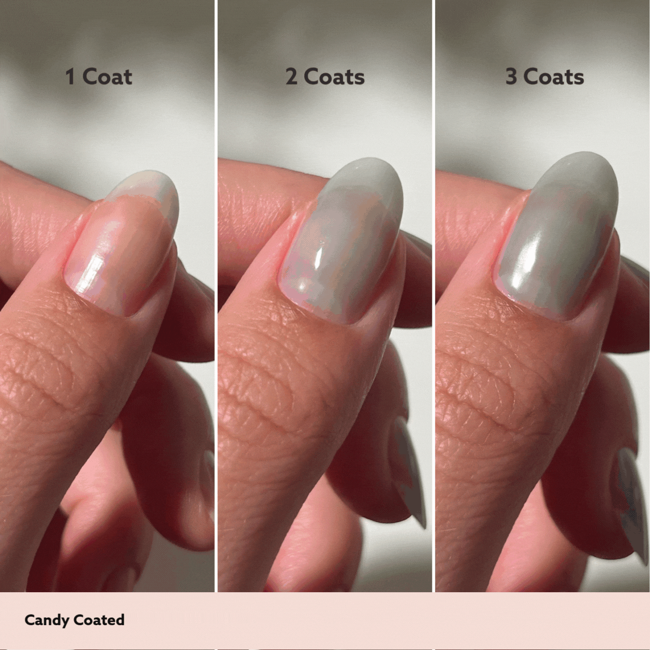 Candy Coated: A sheer dolphin blue grey. Sheer. Jelly.