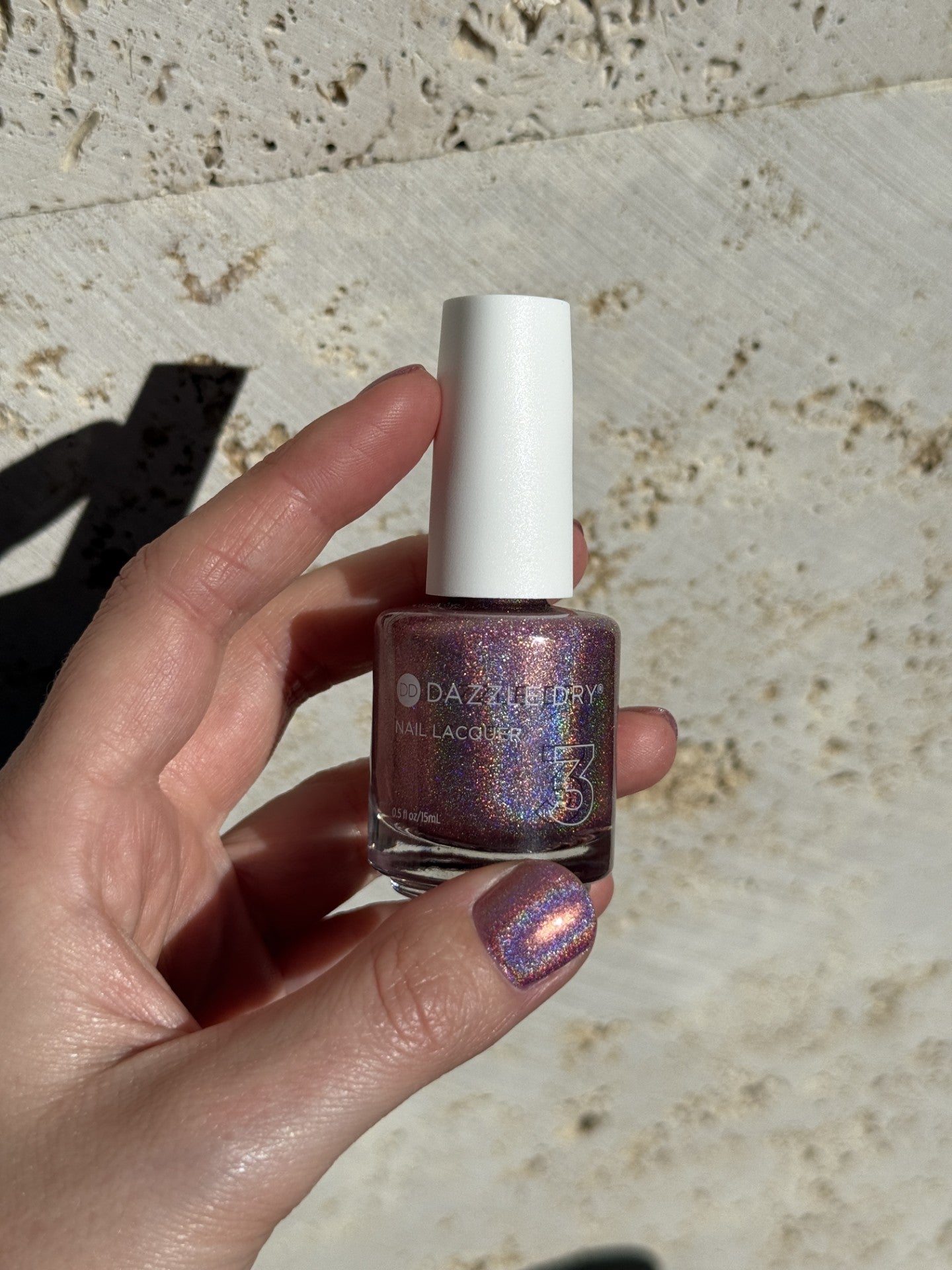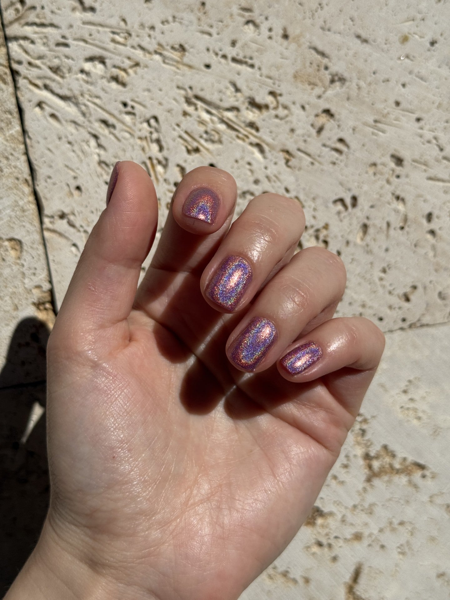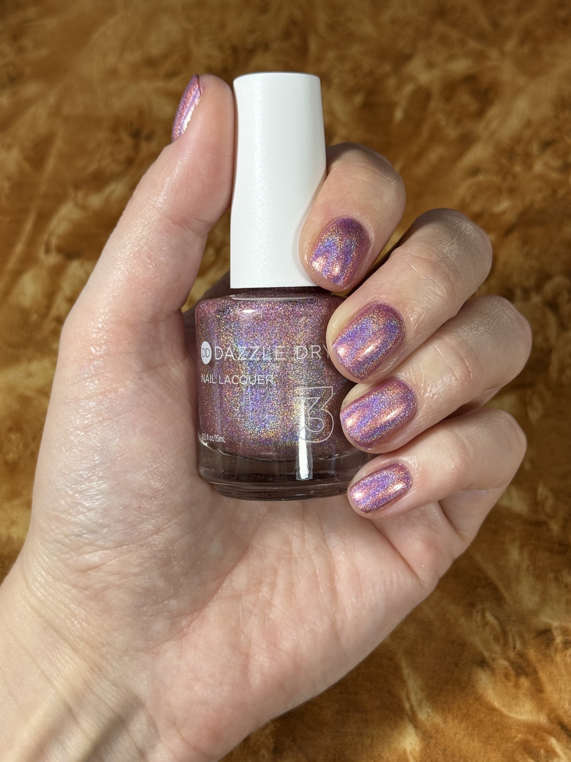 A limited-edition medium pink with a holographic rainbow flash.