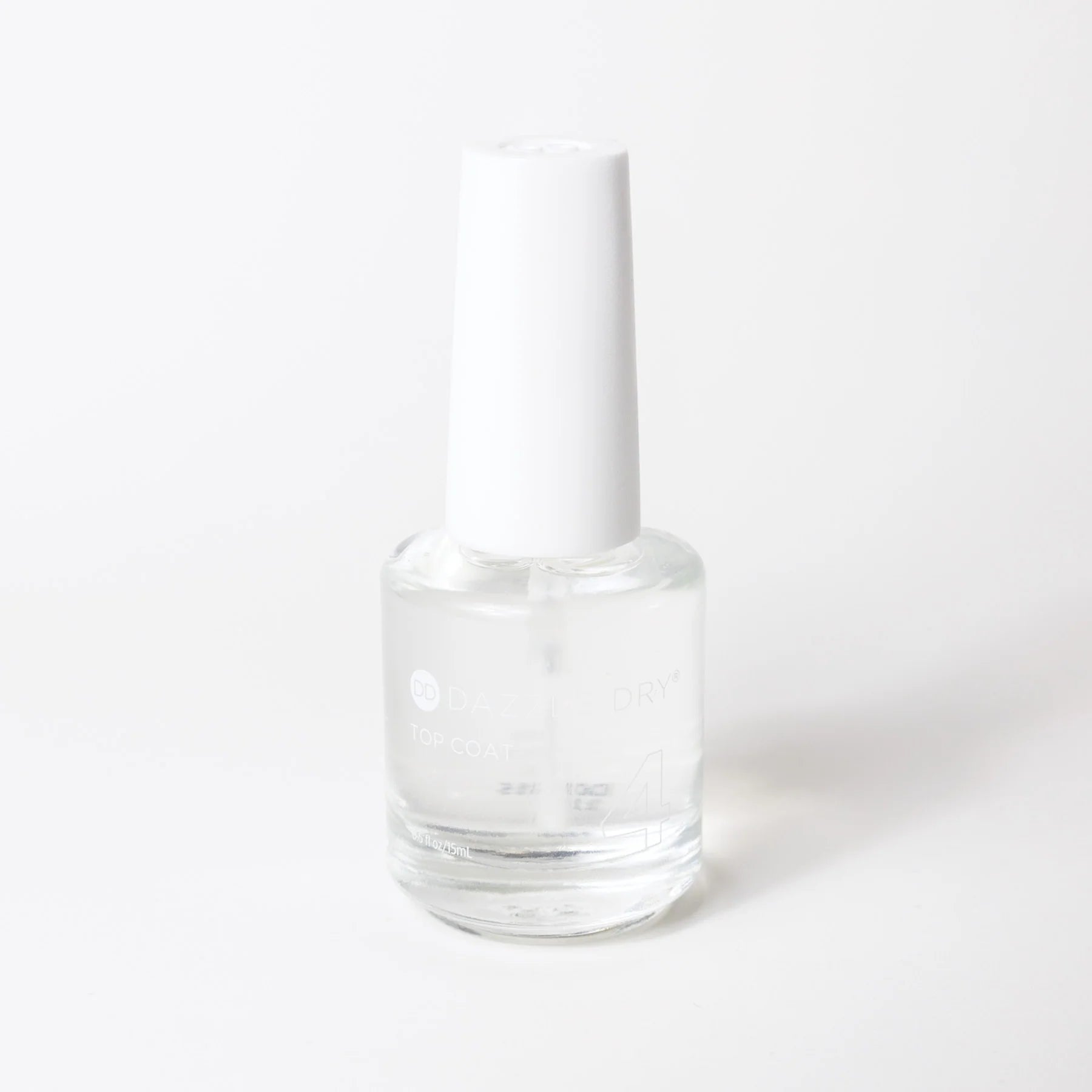 This is Step 4 of the Dazzle Dry 4-Step System. A quick-drying, non-yellowing top coat providing high gloss and protection against abrasion. Can be used with natural and acrylic nails.